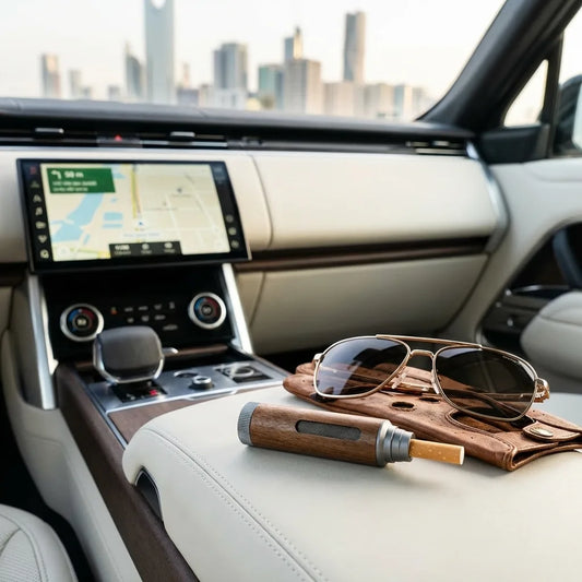 منفضة سجائر محمولة بخشب الجوز الفاخر - مانعة تطاير الرماد